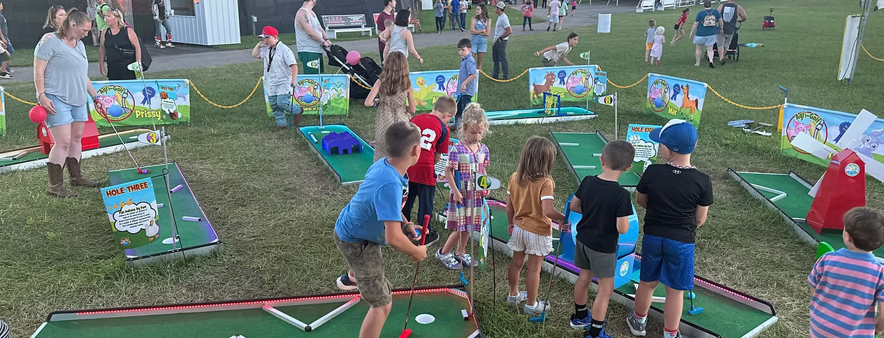 Agri-Golf is a unique and entertaining way to learn about agriculture and farming while having fun on the fairground. It’s specialized holes are designed to showcase your state’s agricultural facts and provide a fun-filled experience for the whole family.